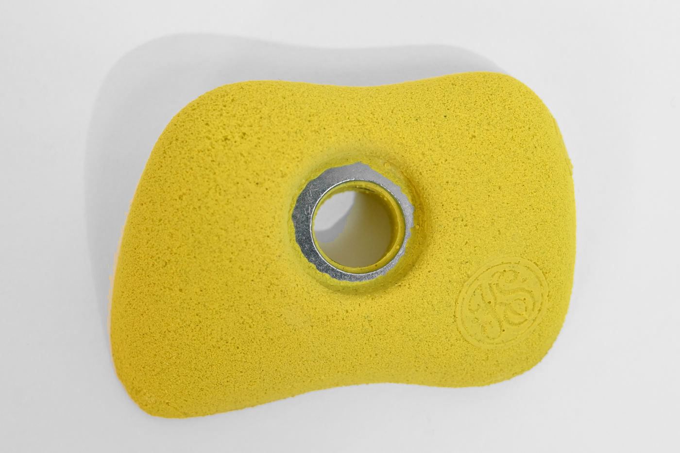 Die Montage der Klettergriffe ist mittels Innensechskantschrauben M10 - die sich als jahrelanger Standard für die Befestigung von Klettergriffen etabliert hat - möglich. Es wurde zur weiteren Stabilisierung eine Metallscheibe in die Klettergriffe eingegossen.