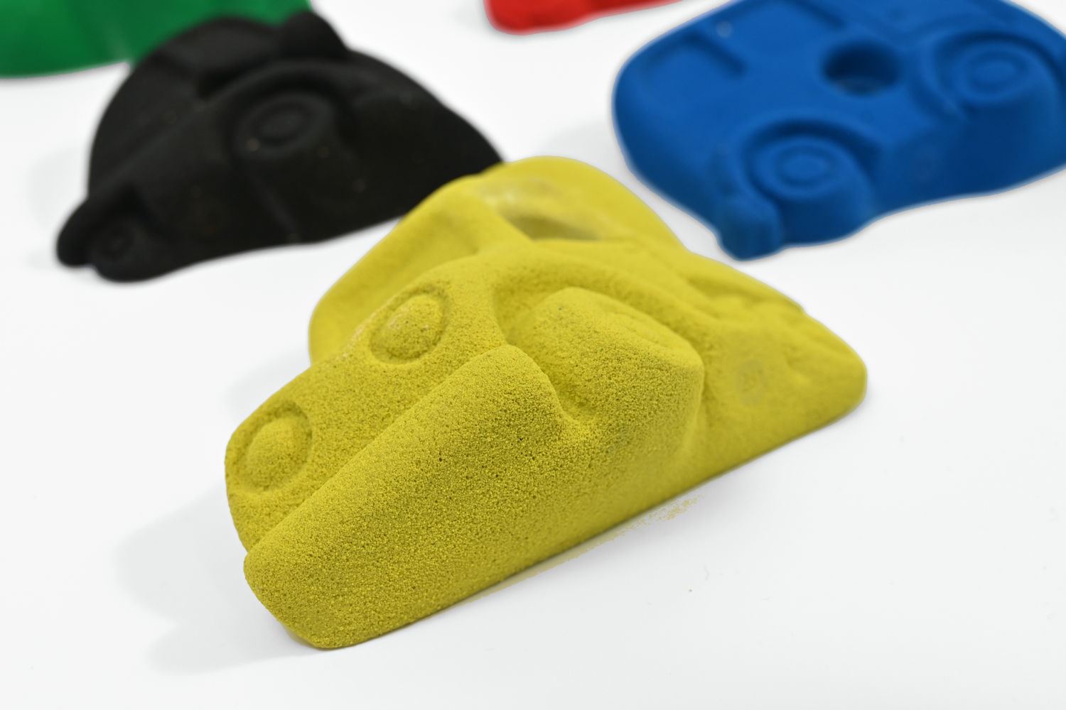 Die Auflageflächen werden plan geschliffen und die Kanten mit Fasen versehen - dadurch ist die Lebensdauer der Klettergriffe im Einsatz an der Kletterwand überdurchschnittlich hoch.