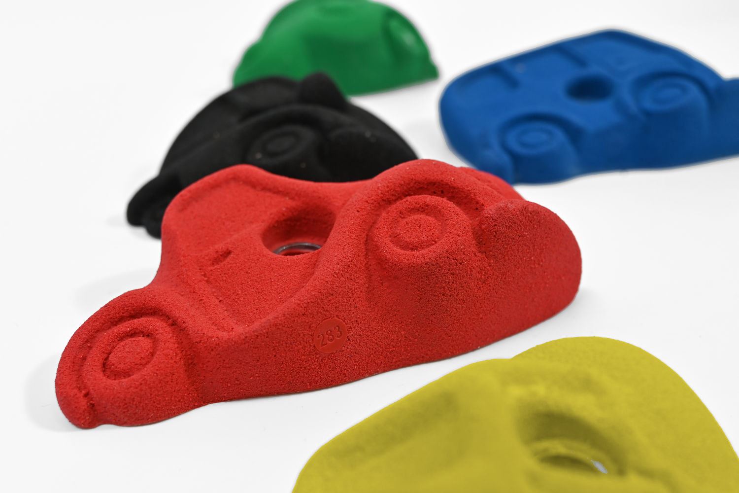 Kinderklettergriffe mit verschiedenen Auto-Motiven - maßgeschneidert auf die besonderen ergonomischen Anforderungen von Kinderhänden. Die Klettergriffe sind lebensmittelunbedenklich und speichelfest gemäß Lebensmittel- und Bedarfsgegenständegesetzes §5Abs.1.Nr.1 - was gerade für Kinder, die eng mit den Klettergriffen in Kontakt kommen von großer Bedeutung ist.