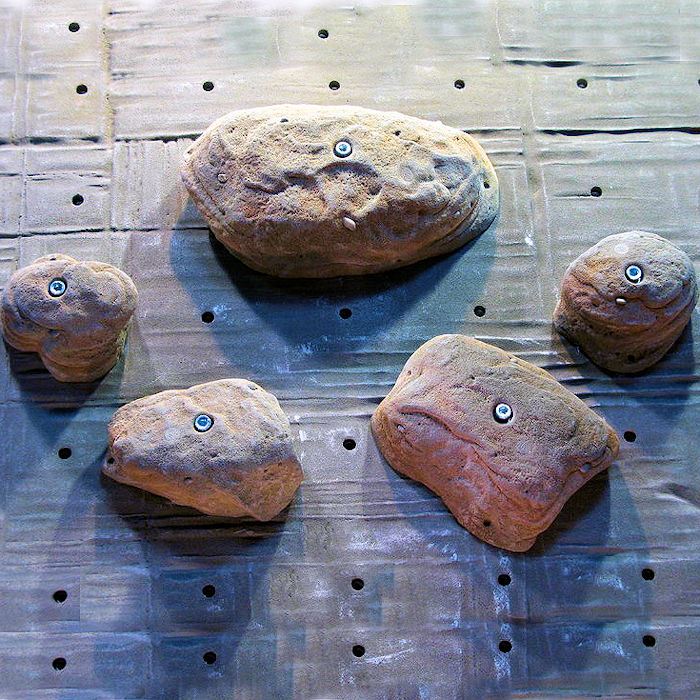 Dieses Klettergriffe-Set besteht aus 5 große - unterschiedlich geformte Klettergriffe. Mit diesem Set bringen Sie das Echt-Fels-Kletter-Feeling in die Halle. Die bräunlichen Griffe kommen der rauen Natur sehr nahe. Kein Griff ist nach Maß sondern hat natürlich geformte Rundungen, was den Kletterern ein echtes Gefühl von Felsen unter ihren Fingern bringt.