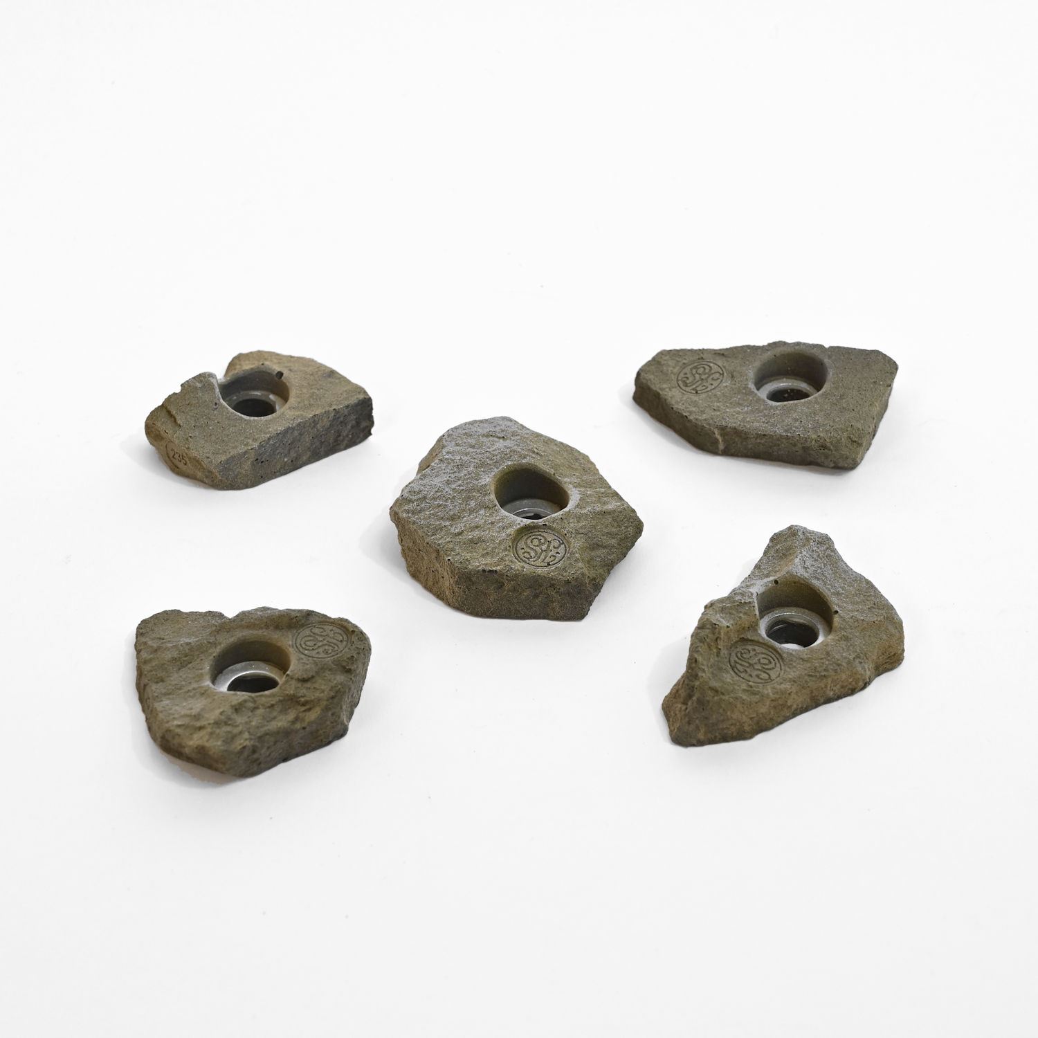 Klettergriffe-Set in Natursteinoptik mit 5 kleinen Klettergriffen in Größe XS. Mit diesem Set bringen Sie das Echt-Fels-Kletter-Feeling in die Halle. Die Griffe mit Ecken und Rundungen kommen der Natur sehr nahe. Kein Griff ist nach Maß sondern ist natürlich geformt.