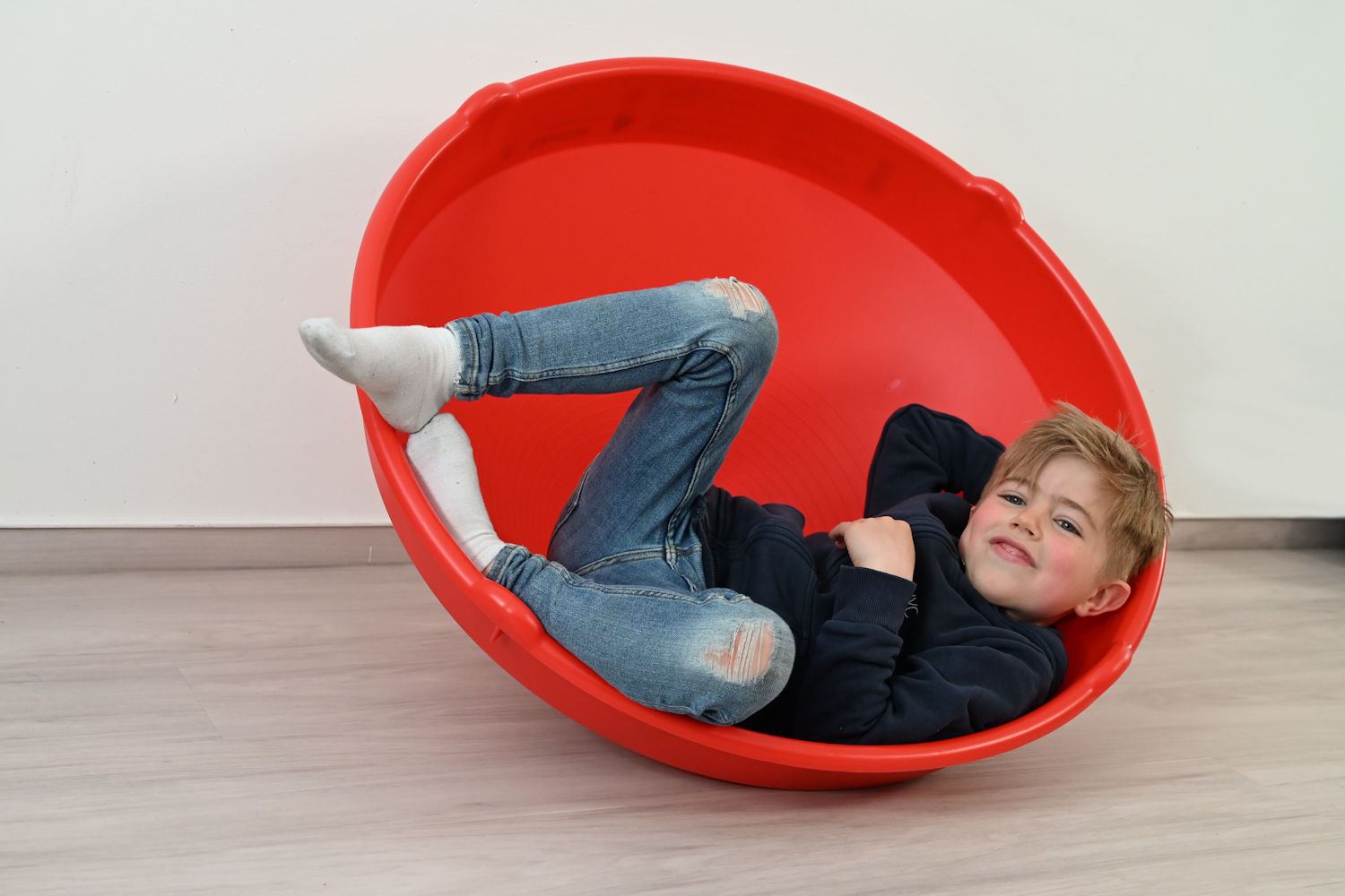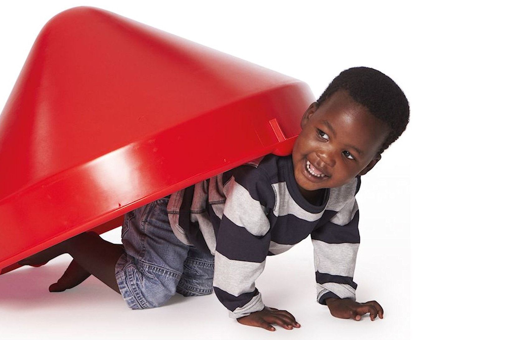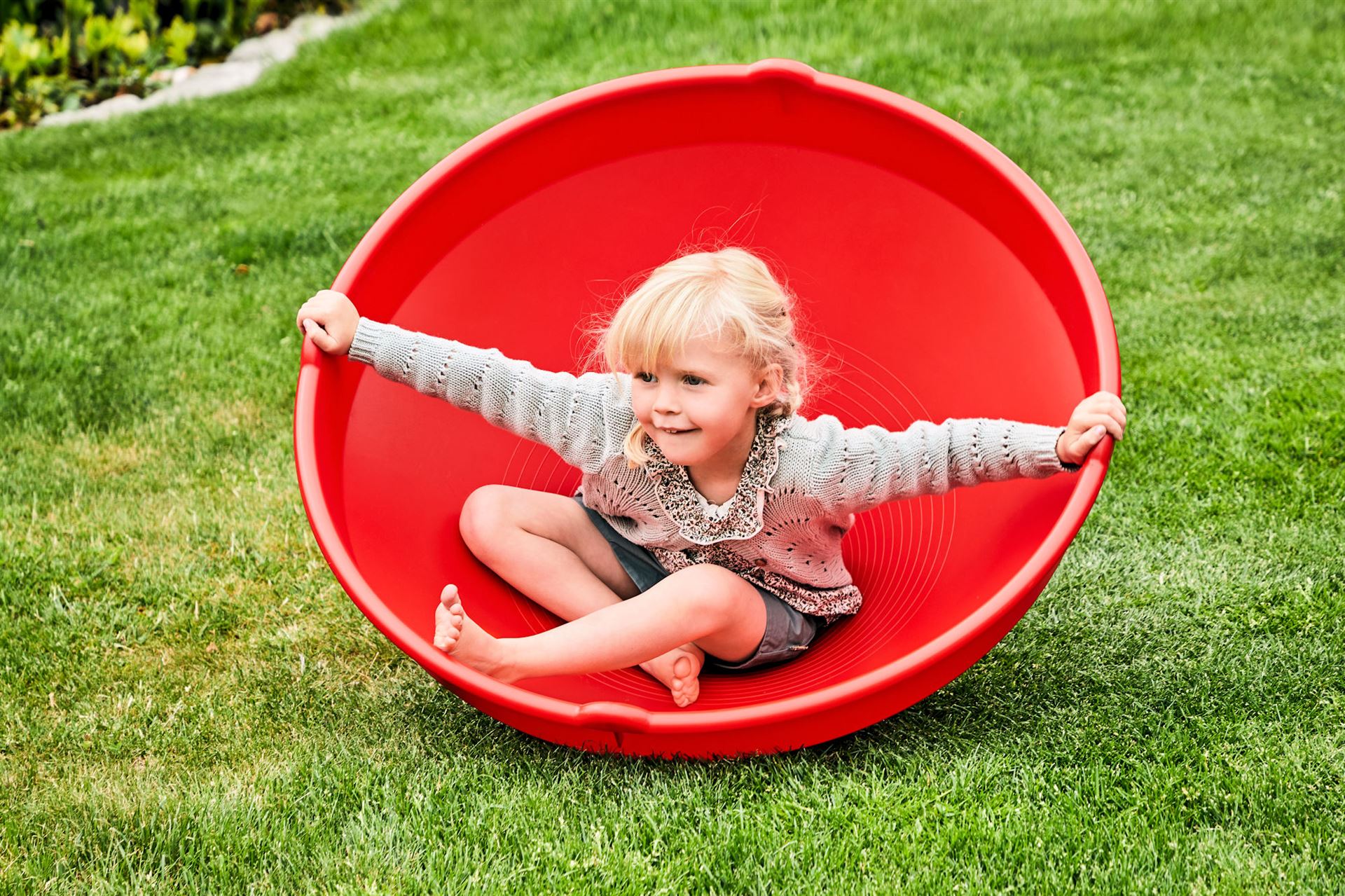 Nur der original Gonge Kullerkreisel ist mit einem spitzen Mittelpunkt geformt. Dies gibt den Kindern das Gefühl auf dem Kopf zu stehen, während sie den Kreisel 360° um den Mittelpunkt bewegen.