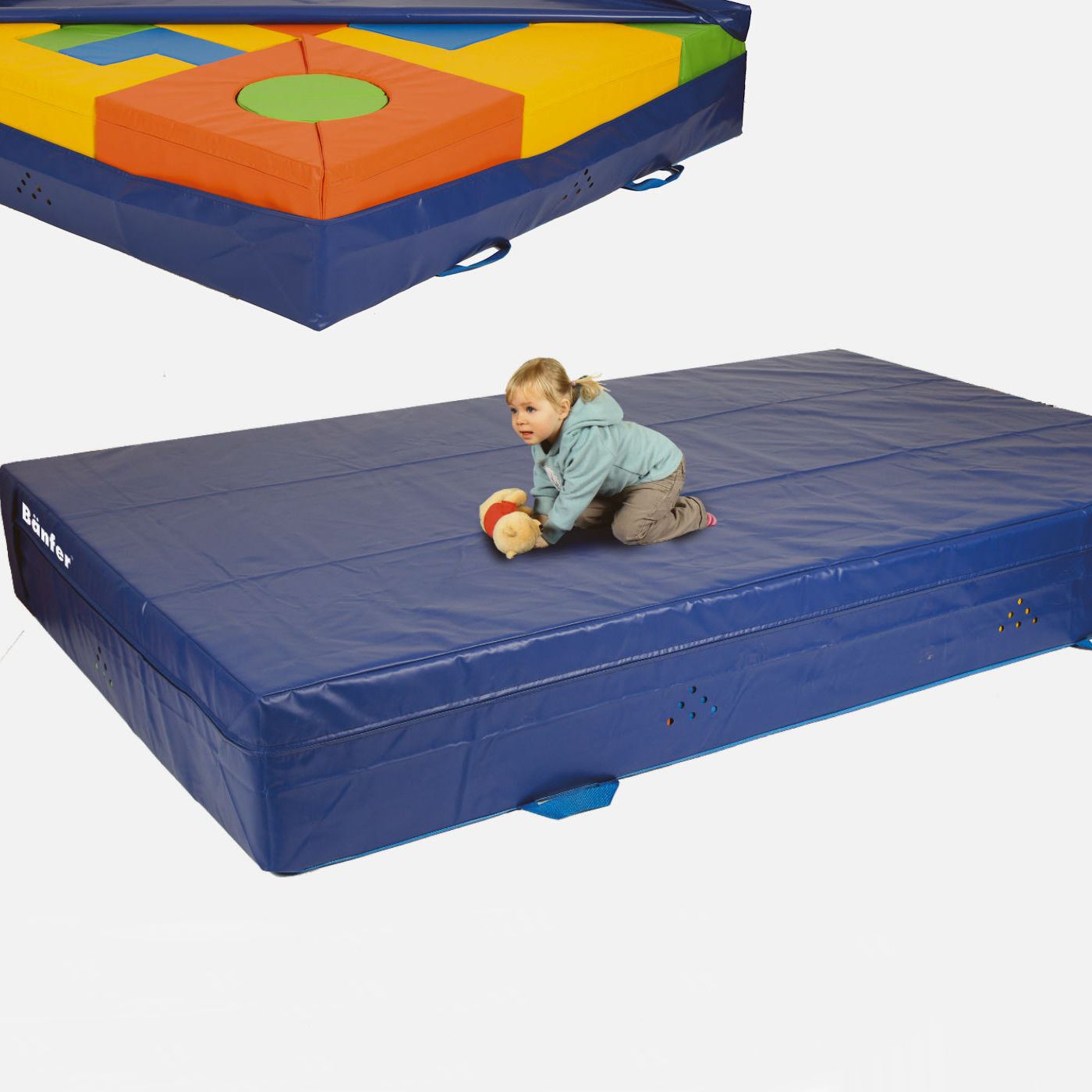Damit das Spielen auch sicher ablaufen kann sorgen weiche Kernmaterialien und leichter Planenstoff als Bezug.