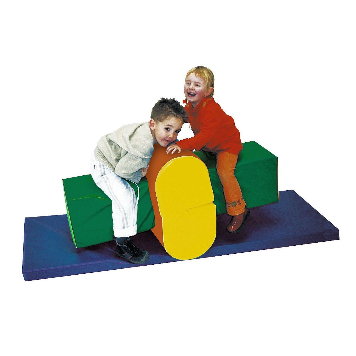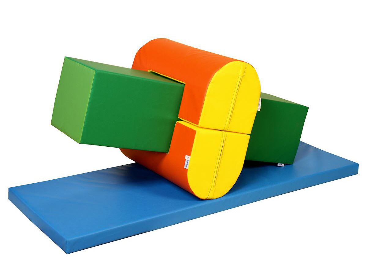 Das komplette Motorik-Element besteht aus weichem Schaumstoff mit Leichtplanenstoffhülle. Die Turnmatte und die Bauelemente können auch einzeln zum Turnen oder Toben eingesetzt werden.