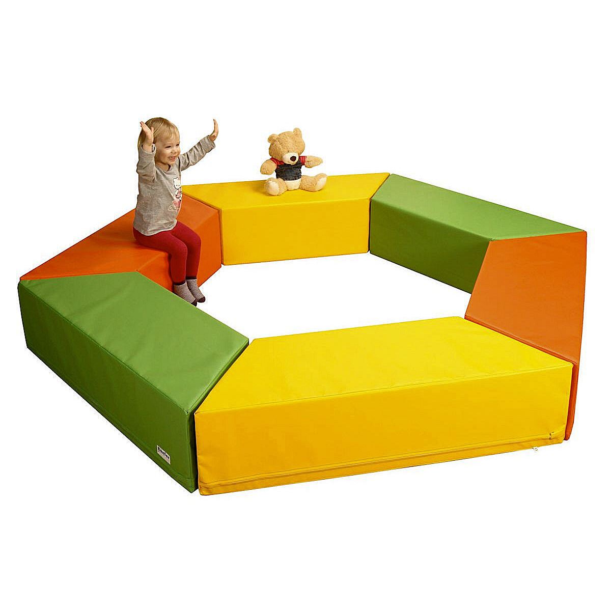 Durch die weiche Beschaffenheit der Softbausteine, sowie dem hautfreundlichen Planenstoff der Motorik-Bausteine von Bänfer wird freies und kreatives Verhalten der Kinder von Beginn an gefördert.