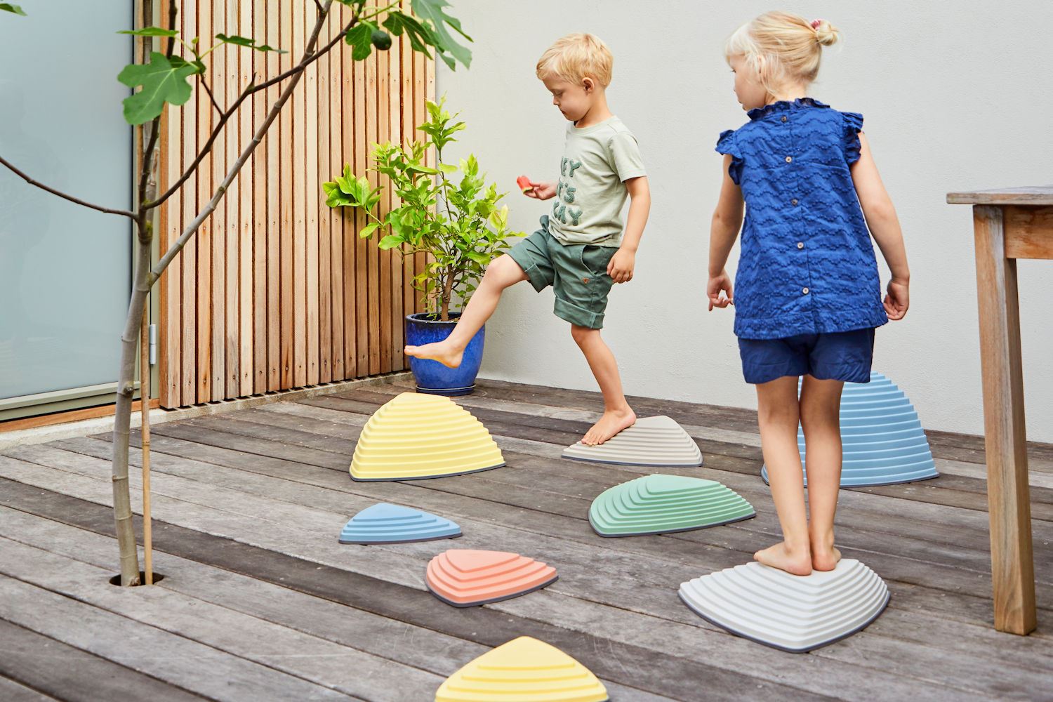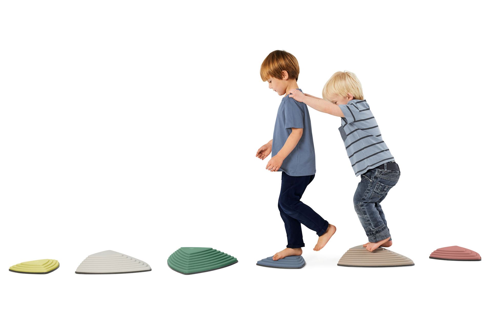Die Anwendung und das Spiel mit den Hügelkuppen trainiert Gleichgewichtssinn, Körperwahrnehmung und Motorik. Die Lage der Steine kann beliebig verändert werden, um unterschiedliche Anforderungen zu stellen. Kinder unter 2 Jahren fangen mit dem Klettern/Krabbeln auf den niedrigen Fluss-Steinen an und trainieren so spielend ihre Bewegungskoordination. Später laufen oder hüpfen die Kinder von Stein zu Stein und legen diese immer weiter auseinander.