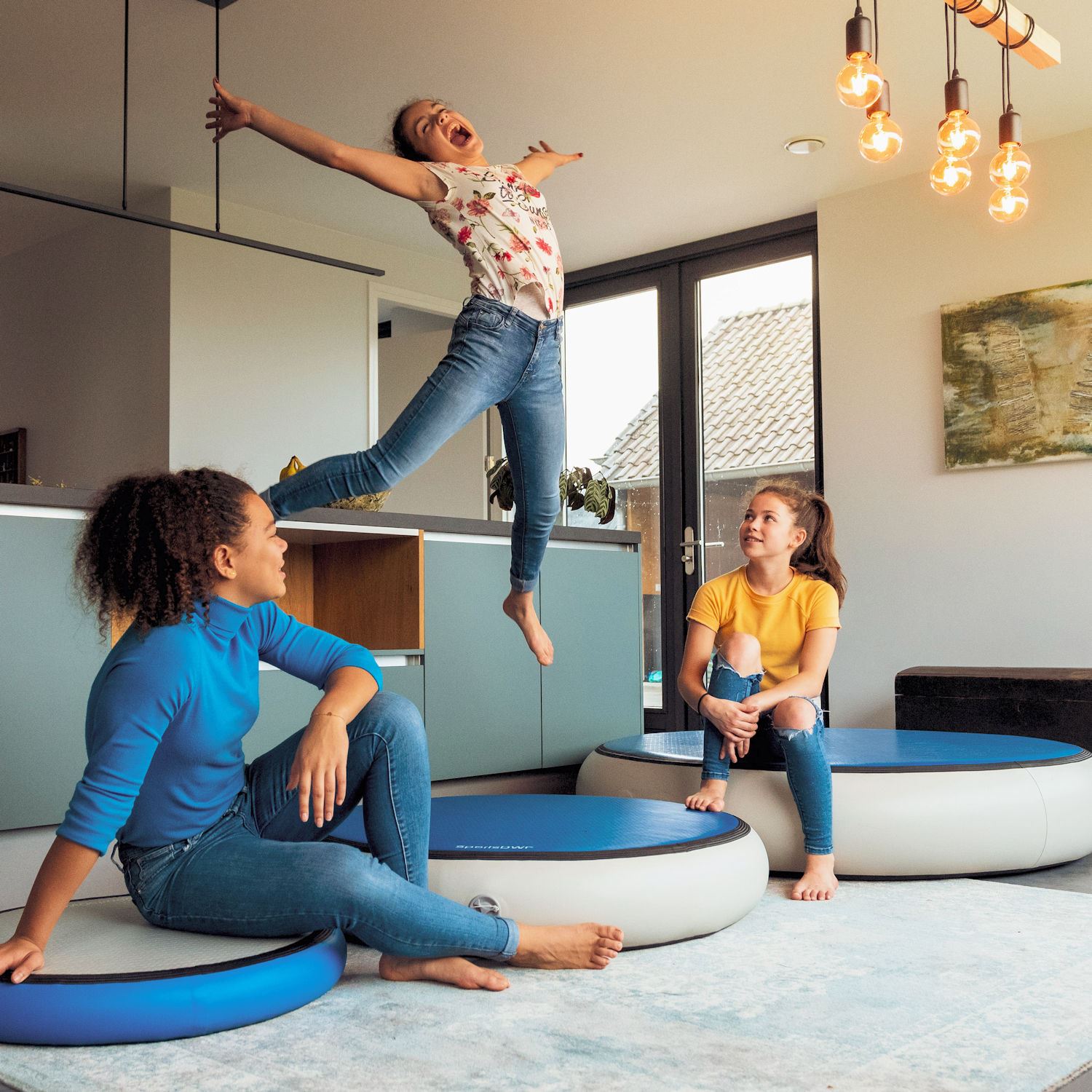 Das AirSpot Trampolinkissen ist schnell aufgeblasen und lässt sich nach Gebrauch platzsparend im Geräteraum verstauen.