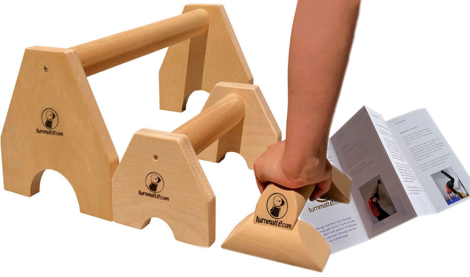 Handstandklötze bzw. Handstandbarren helfen bei verschiedenen akrobatischen Übungen. Sie sind bestens geeignet zur Erarbeitung von Handstandphasen im Grundlagenbereich.