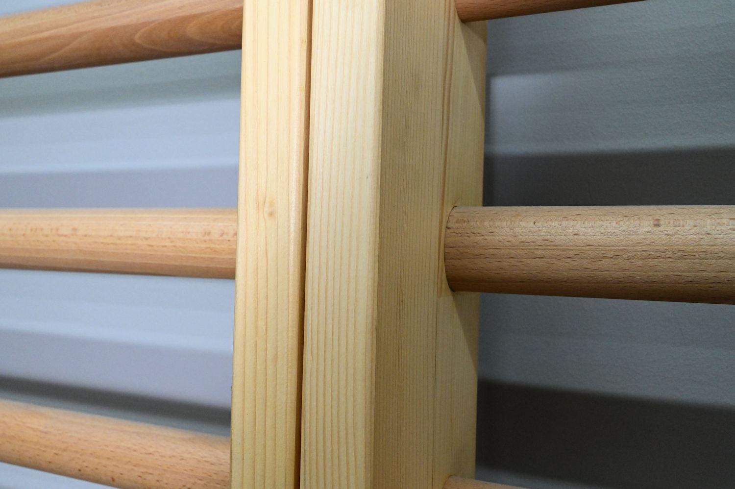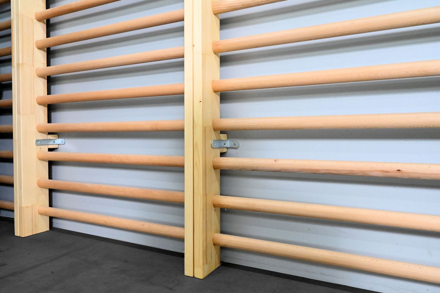 Egal ob in der Sporthalle, in der Kita oder im privaten Trainingsraum – unsere Sprossenwände zeichnen sich durch hochwertige Materialien und präzise Verarbeitung aus. Sie sind speziell für den Einsatz im Innenbereich konzipiert. Die stabilen Seitenteile bestehen aus massivem, heimischem Nadelholz, während die oval geformten Sprossen aus strapazierfähigem Eschenholz gefertigt sind.