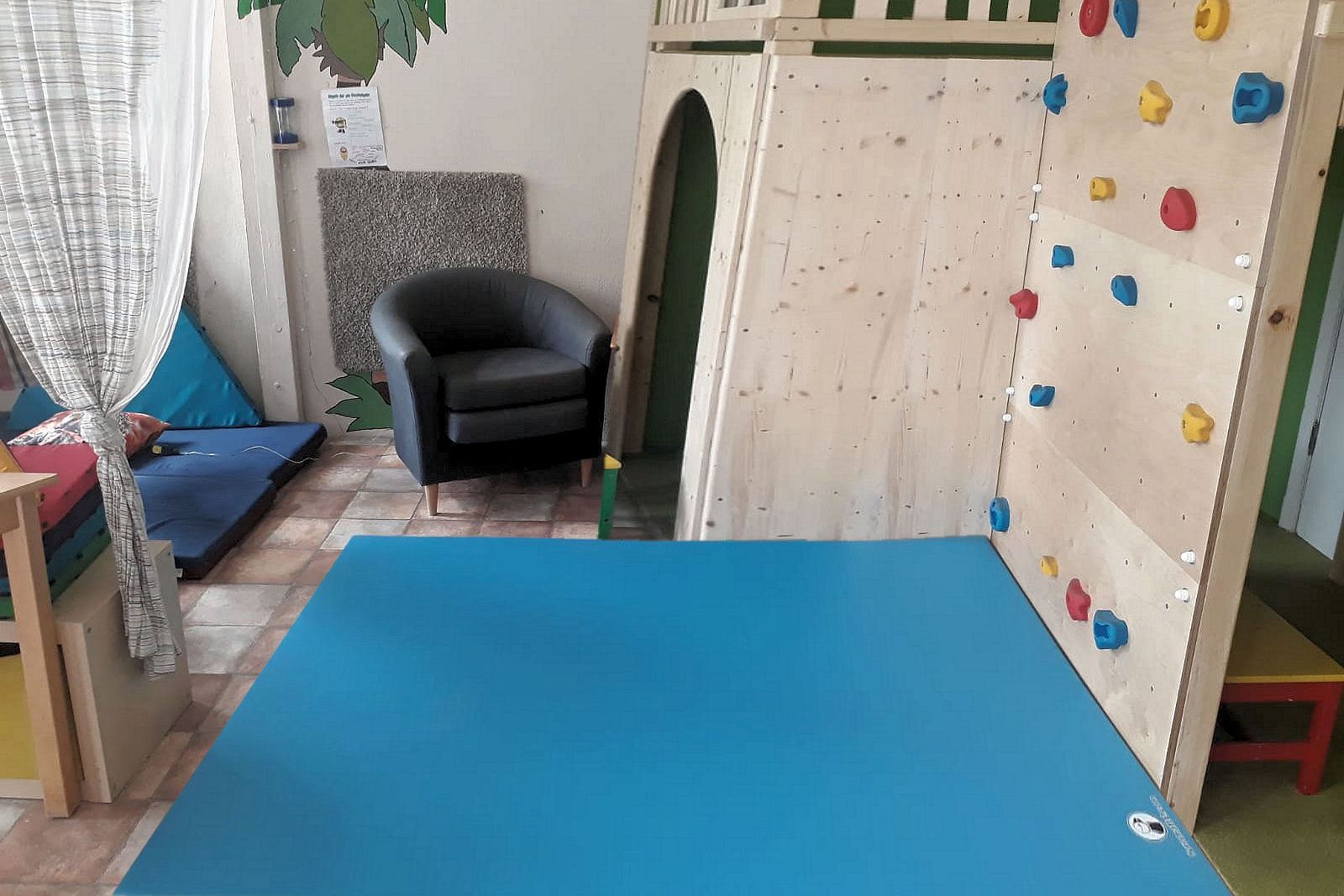Unsere Fallschutzmatten für den Innenbereich findet man im Tobe- und Bewegungsraum oder der Turnhalle in der Kita, der Schule und in der Boulderhalle.