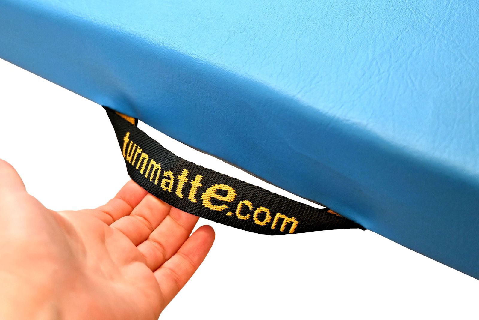 Unsere Standard Turnmatte ist mit 4 stabilen, eng anliegenden Tragegriffen ausgestattet. Die Tragegriffe sind mit dem Turnmatten-Bezug durch eine strapazierfähige Naht fest verbunden.