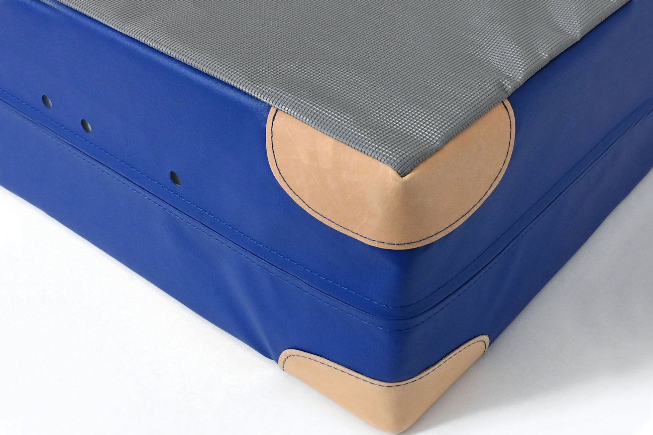 Unsere Weichbodenmatten sind mit 8 dicken Echtlederecken ausgestattet. Die Oberseite sowie die Seitenflächen des Weichbodens haben einen sehr angenehmen, hautsympathischen Bezug aus Leichtplanenstoff - natürlich abwaschbar. Das spezielle Material an der Unterseite hat rutschhemmende Eigenschaften. Damit ist eine gute Standfestigkeit - auch bei extremen Gebrauch - garantiert.