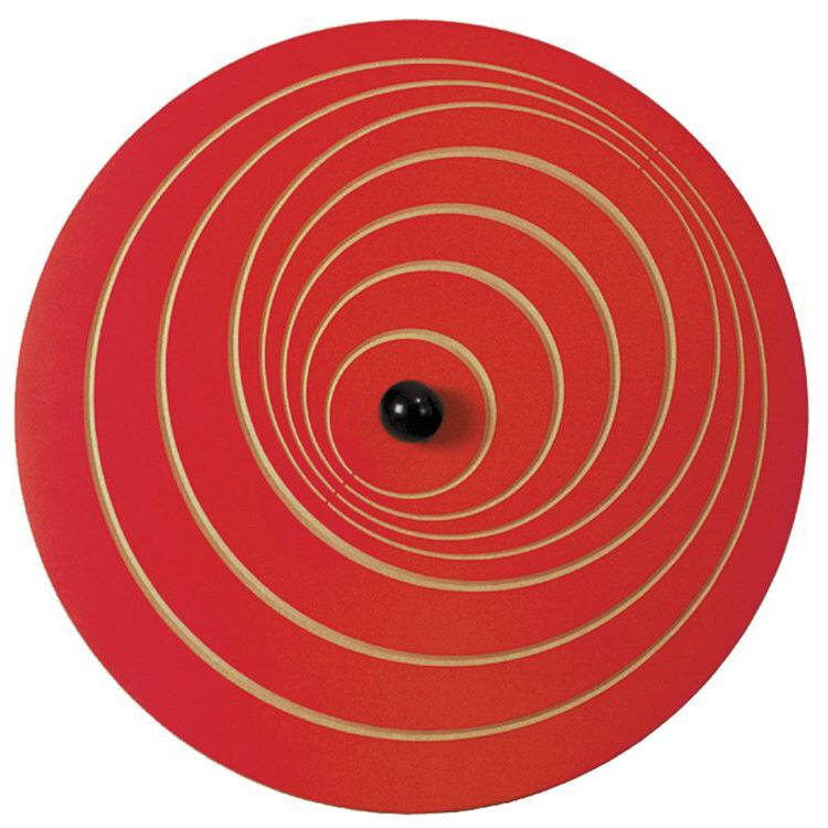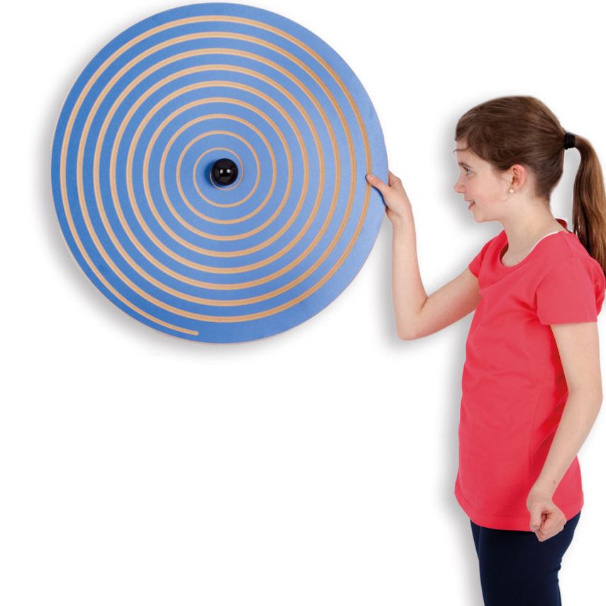 Die Wandkreisel lassen sich mit einer Hand leicht in Schwung bringen. Drehung und Geschwindigkeit verändern die verschiedenen Kreiselmuster und ergeben immer wieder wechselnde Wahrnehmungsbilder mit optischen Phänomenen.