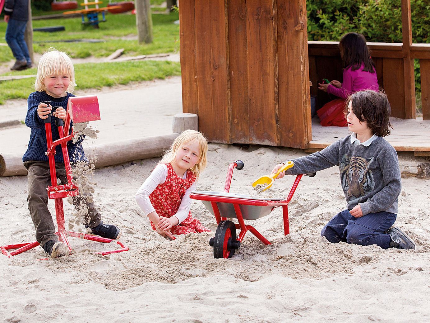Das Arbeiten mit der Schubkarre trainiert Gleichgewichtssinn, Koordination und Teamwork. Wohl kaum ein Spielgerät muß so viel aushalten, wie die Schubkarre. Für diesen Fall ist die VIKING Schubkarre entwickelt worden - in neuer Ausführung mit verzinkter Wanne , mit extra verstärkter Ladefläche und stabilem, alleintragenden Rahmen. Die Abstellfüße sind extra verstärkt, das kugelgelagerte Rad rollt schön leicht.