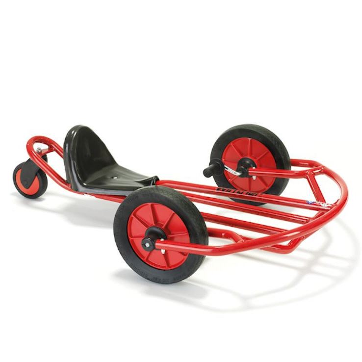 Das große Swingcart passt mit seinen Abmessungen sehr gut für ältere und größere Kinder. Ein außergewöhnliches Fahrzeug mit hohem Spielanreiz, das die Koordinationsfähigkeit der Kinder herausfordert und stärkt. Beim Swingcart erfolgt die Lenkung und der Antrieb mit den Händen über die Vorderräder. Optimal für die grobmotorische Entwicklung und für die Stärkung der Brust- und Armmuskulatur.