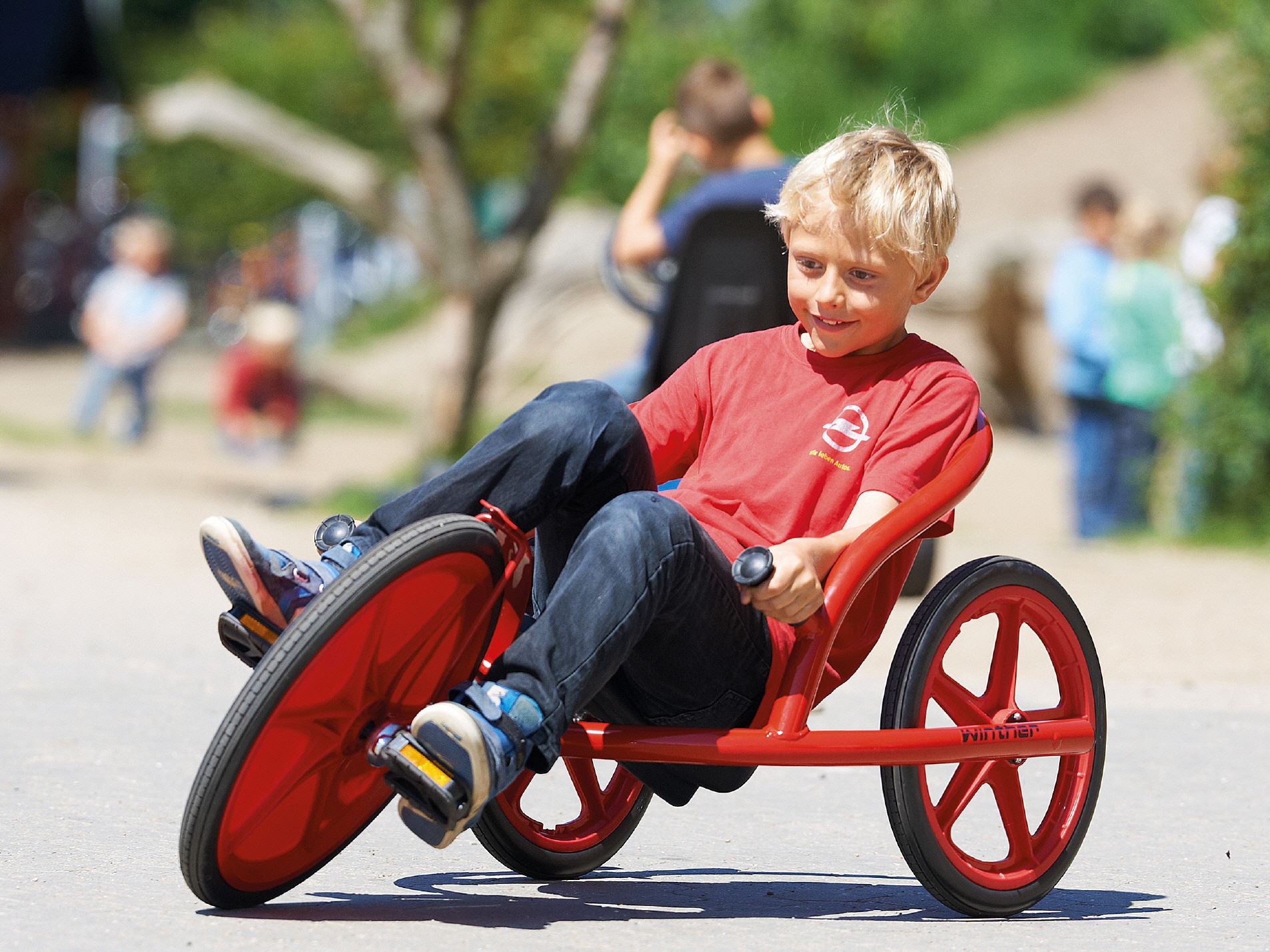 Der Antrieb des U-Rider's von Winther erfolgt über die Pedale. Die Lenkung wird durch entsprechende Körperverlagerung und entgegengesetztem Druck auf die Handgriffe ausgeführt. Die besonderen Fahreigenschaften erlauben Vorwärts- und Rückwärtsfahren. Jedes Kind möchte mit diesem außergewöhnlichen Fahrzeug fahren, das mit seinem futuristischen Design zu fantasievollen Spielaktivitäten anregt. Fahren und Spielen mit dem U-Rider von Winther stimuliert die Hirnaktivität sowohl der rechten - als auch der linken Gehirnhälfte.